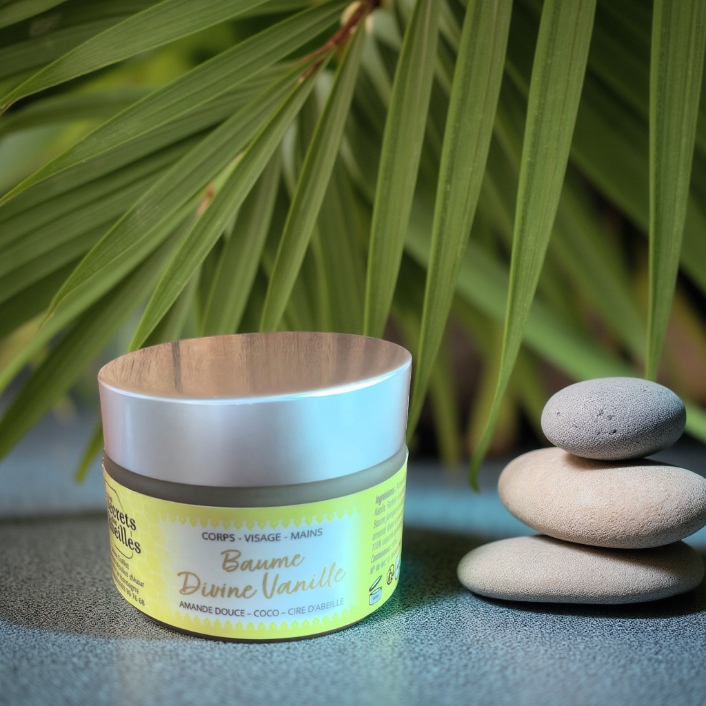 Grâce aux propriétés adoucissantes et protectrices des huiles végétales d’Amande douce et de Coco, ce baume délicatement parfumée à la vanille redonne confort et souplesse aux peaux déshydratées.